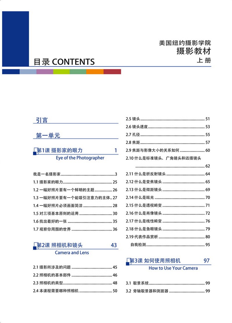 《美国纽约摄影学院摄影教材(新修订版2)(套装上下册)》是一本经久实用的教材,总是引导我们去把握摄影作品与影像之外的时空所形成的各种相互冲突和相互生成的关系,从而使得视觉的权力越来越具有主体性。该书是一本实际而通俗的摄影入门书,很好地解答了我们对于摄影技术的疑惑,它会让你成为优秀的摄影匠,如果你继续深入阅读与实践,最终会成为优秀的摄影家。