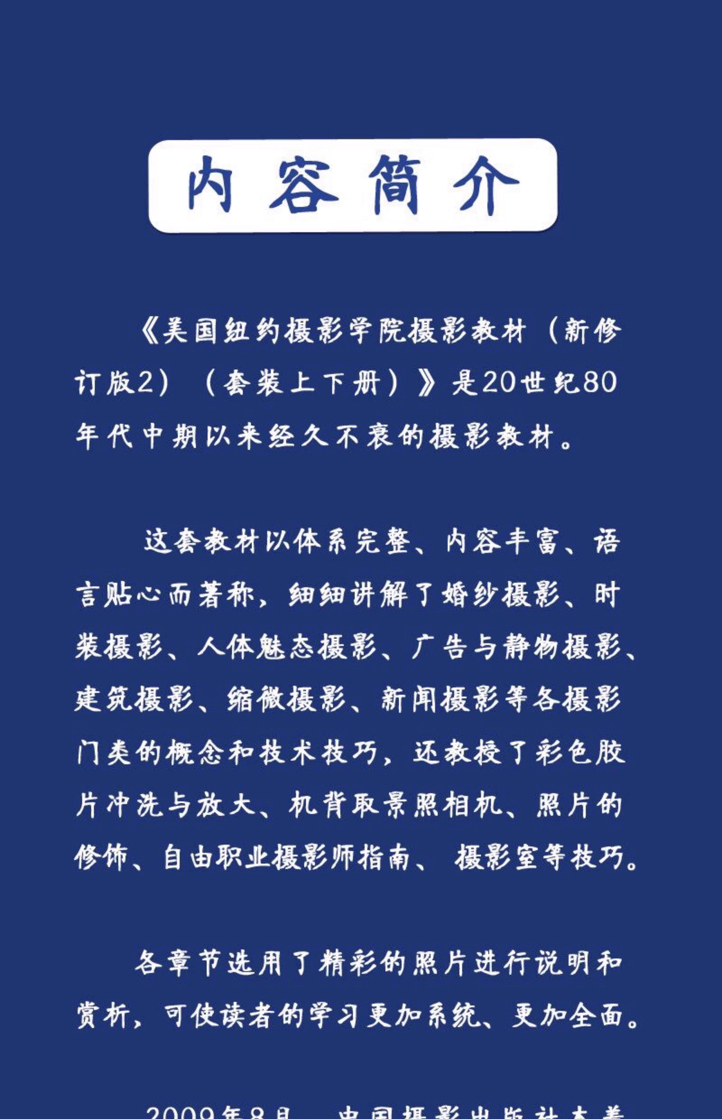 此书共分为上下两册,多次修订,中国摄影出版社于2010年8月1日再版(新修订版2)。